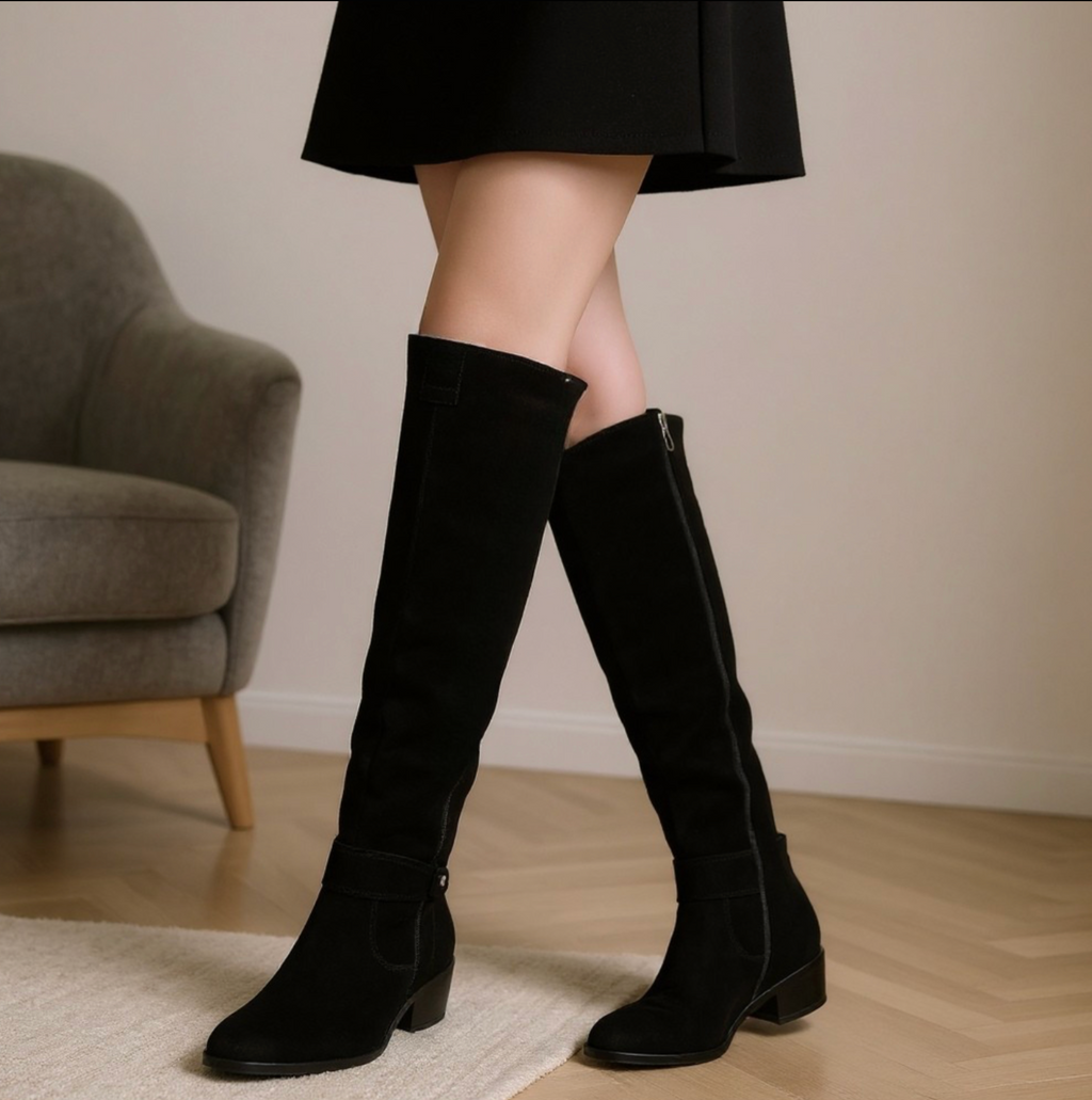 These are the BelleVie Boots, an elegant boot made of soft suede, designed for a timeless look and ultimate wearing comfort. With its refined finish and perfect fit, it is ideal for both casual and dressed-up outfits.